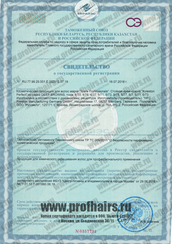 Декларация о соответствии. Крем-краски KP Deep Browns 4-6: 4/71, 4/75, 4/77, 5/71, 5/73, 5/75, 5/77, 6/7, 6/71, 6/73
