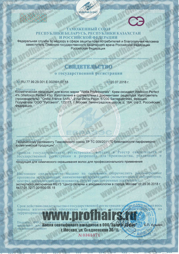 Декларация о соответствии. Крем-оксидант welloxon perfect 4%