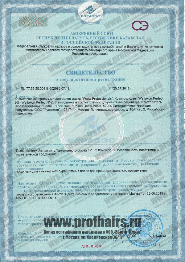 Декларация о соответствии. Крем-оксидант welloxon perfect 9%